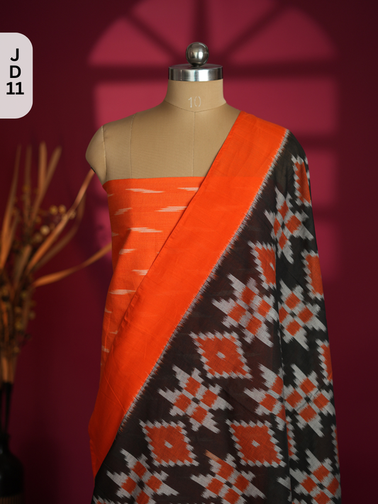 azhagiDouble Ikkat Cotton with Mercerised Cotton Dupatta