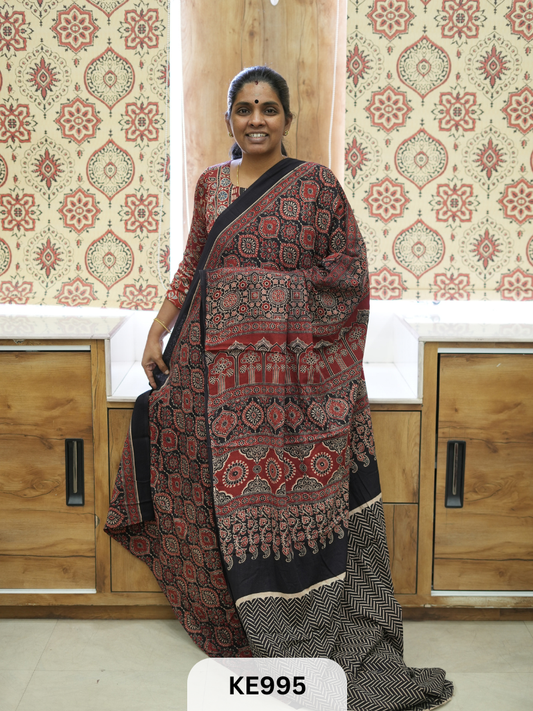 AJRAKH COTTON - BHUJAJRAKH VEGETABLE DYED COTTON SAREE
