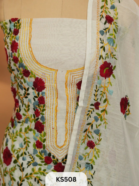 SaleazhagiDupion Chanderi Silk With Hand Kantha Stitch