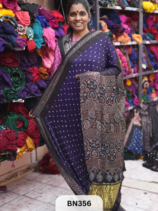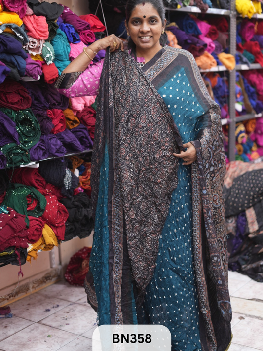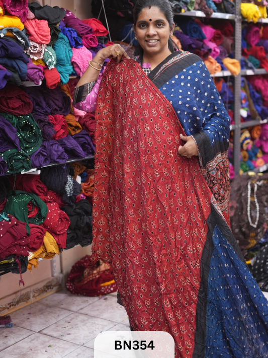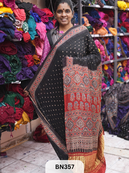 SaleBANDHANI SAREE - BHUJMODAL AJRAKH SILK - HAND BANDHINI | LAGDI PATTTA