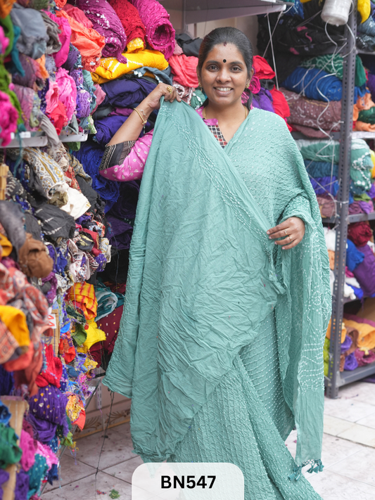 SaleBANDHANI SAREE - BHUJMUL COTTON HEAVY BANDHEJ SAREE WITH JARI TUSSLES