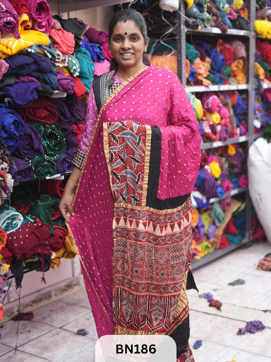 Sold outBANDHANI SAREE - BHUJMODAL GAJI - AJRAKH BANDHINI SAREE