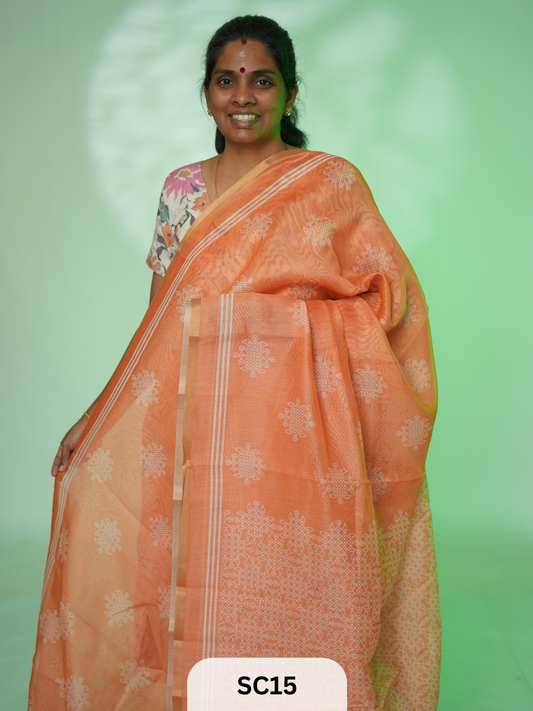 JACKPOTKOLLAM PRINT LINEN COTTON SAREE