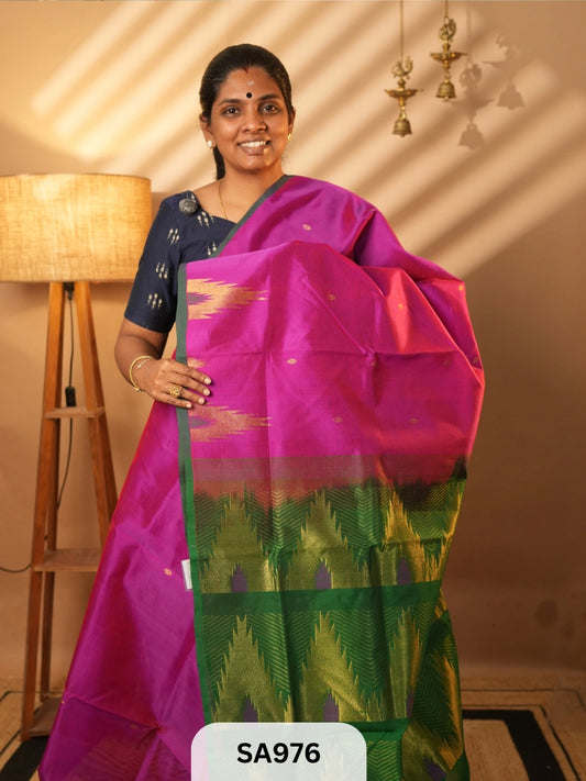 SaleSareesPURE HANDLOOM SILK COTTON SAREE | TEMPLE BORDER