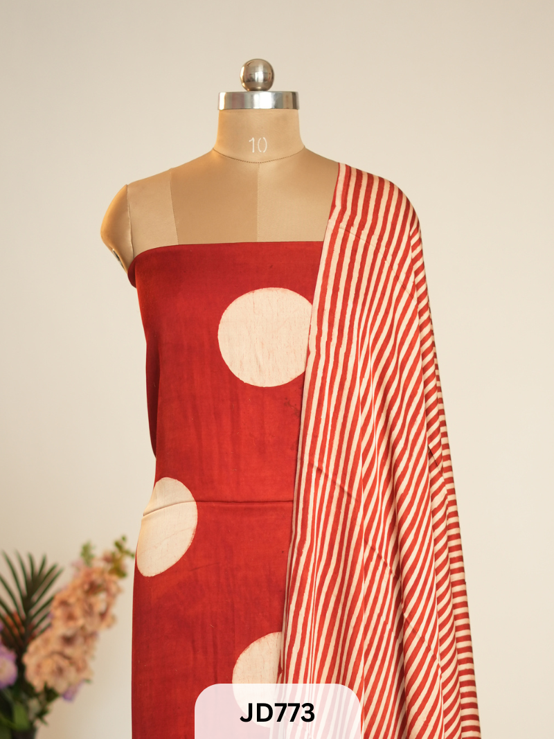 Ajrakh is more than a print—it’s a 4,000-year-old textile tradition rooted in the Indus Valley Civilization, perfected over generations by Khatri artisans of Gujarat and Sindh. Each motif tells a story: geometric patterns symbolize cosmic order, while floral elements echo nature’s harmony. At Saree Story, we collaborate directly with these artisan communities to revive and sustain this endangered craft. Our Modal Ajrakh Salwar Suit honors this legacy by fusing ancestral techniques with contemporary silhouettes—ensuring every piece carries forward a living heritage.