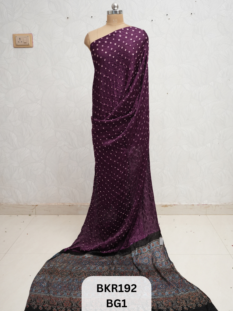 🎨 Dual Heritage Craft: Handcrafted Bandhani (tie-dye) meets intricate Ajrakh block printing in a seamless, borderless drape.