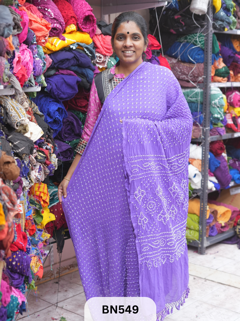 MUL COTTON HEAVY BANDHEJ SAREE WITH JARI TUSSLES