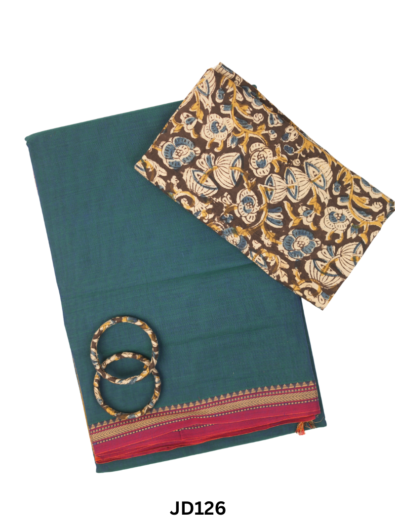 - 💃 Ready-to-Wear Set: Includes pre-stitched blouse piece with Kalamkari detailing—effortless styling, zero hassle.