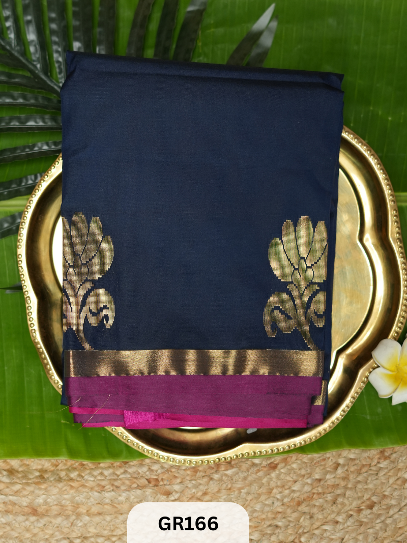 Adorned with rich borders, temple motifs, and a contrasting pallu that glows under light, this saree is perfect for weddings, festivals, pujas, and grand celebrations. The deep, radiant hues are achieved using eco-friendly dyes, ensuring colorfastness and skin-friendly comfort. Whether you're a bride seeking a bridal silk saree or a connoisseur of ethnic fashion, this Kanchipuram silk saree is a lifelong heirloom.