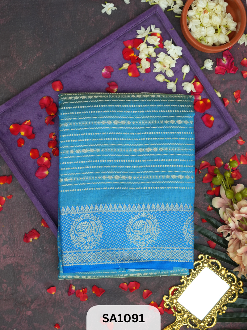 - 🎨 Intricate Hand-Embroidered Borders & Pallu: Inspired by ancestral Kanchipuram and Bhagalpur weaving techniques, each motif tells a story of devotion and artistry.