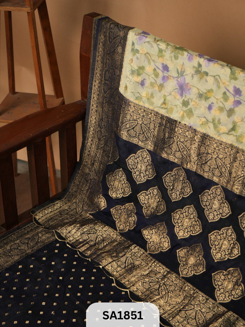 A: Absolutely. With its rich prints, elegant drape, and luxurious feel, it’s a top choice for wedding guests, sangeet, or reception wear — especially in summer.