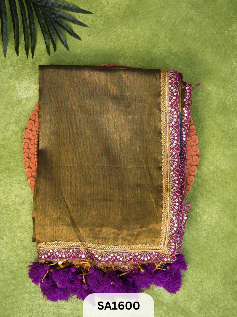 The Designer Tissue Saree is where modern minimalism meets ancient textile reverence.