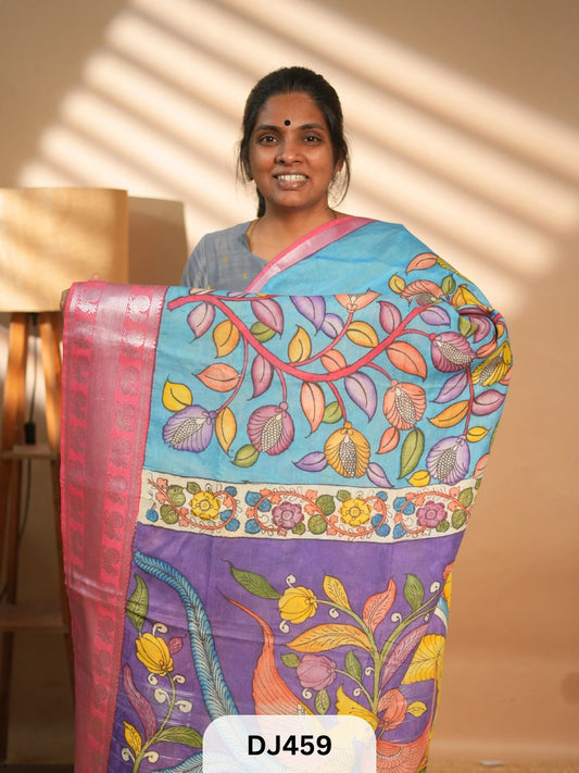 SalePen KalamkariHANDLOOM PENKALAMKARI X MANGALGIRI PATTU BORDER